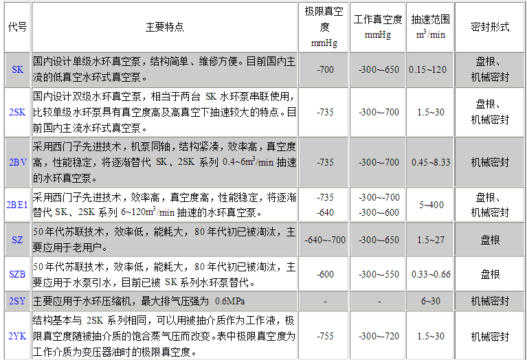 面對(duì)各種型式的水環(huán)式真空泵及壓縮機(jī),我們特將其各自特點(diǎn)收集如下,以利于用戶選型