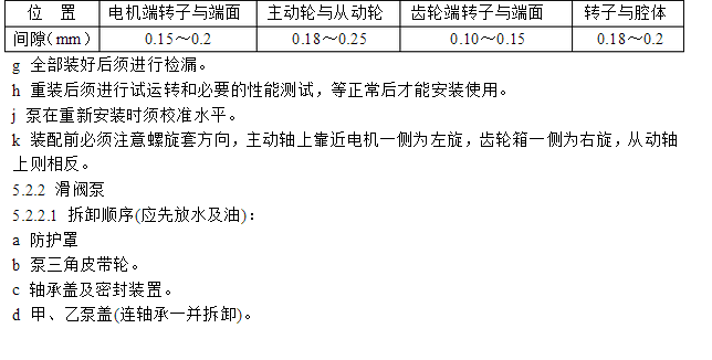 5.2.1 羅次泵進(jìn)行拆卸和重新裝配時,須根據(jù)以下注意事項進(jìn)行: a 未拆卸前,先測量并記錄轉(zhuǎn)子各部分間隙。