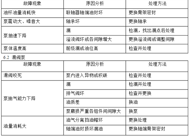 f 拆下泵底儲油杯,倒出陳油,清洗油杯更換新油,檢查油杯口密封圈良好后安裝上油杯,確保密封口不能漏油漏氣。 6 故障原因及其消除方法 6.1 羅茨泵