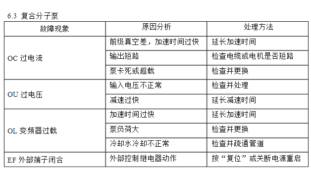 a 聯(lián)軸器及墊片是否損壞和松動,皮帶的松緊地腳螺絲是否松動。 b 復(fù)合分子泵法蘭連接口螺絲是否松動,水冷卻流量是否正常。 5.1.3 每三個月檢查
