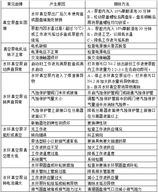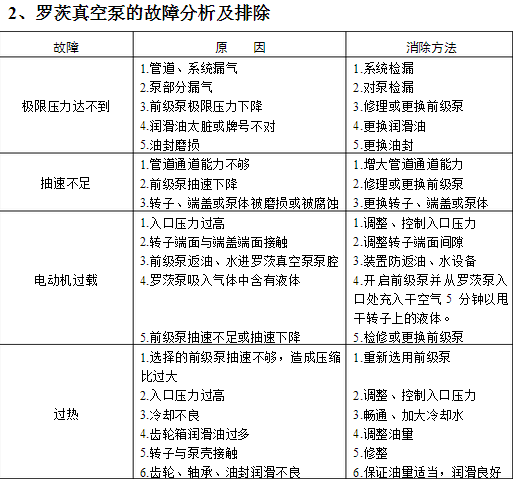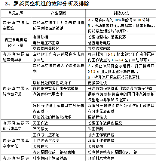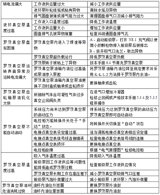 真空泵(水環(huán)泵、羅茨泵、羅茨機(jī)組等)的故障分析及排除說明