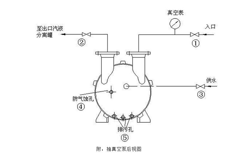 4) 調(diào)節(jié)供水量.向泵體內(nèi)供水是為了使水在葉輪帶動下形成液環(huán),從而與偏心安裝的葉輪形成可變?nèi)莘e的密封空間.當供水不足時,會影響泵的抽空能力;供水越大抽空能力越強,但是當供水過量時則會造成泵的軸功率上升和水資源的浪費,甚**泵體葉輪出現(xiàn)水擊.具體的調(diào)節(jié)方法如下:1.啟動泵后,把供水閥門③緩慢加大開度;2.觀察系統(tǒng)真空表,當表壓穩(wěn)定在目標壓力時,即為合適供水量